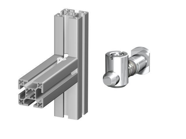 Verbinding met een vierkante kop voor de verbinding tussen een 20 en F profiel.