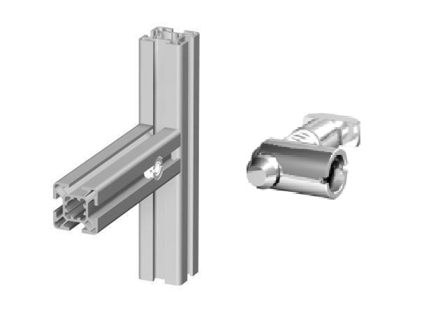Standaard verbinding voor de verbinding tussen een 40 en E profiel.Bestaande uit het anker 1.21.A1E1 + Busje 1.21.B40