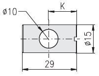 Busje voor de verbinding van een 30x150 profiel met een E profiel.