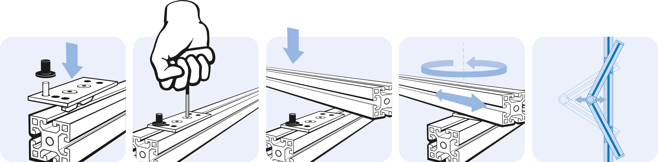Voor het samenbouwen van vouwdeuren met een gelijktijdige draai- en schuifbeweging.