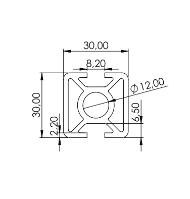 Profiel 30x30, 2F, SP - Zwaar profiel