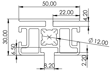 Paneel profiel 30x50, 3F, LP Nut 4mm.