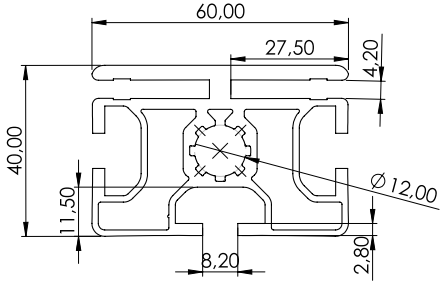 Paneel profiel 40x60, 3E, LP Nut 4mm.