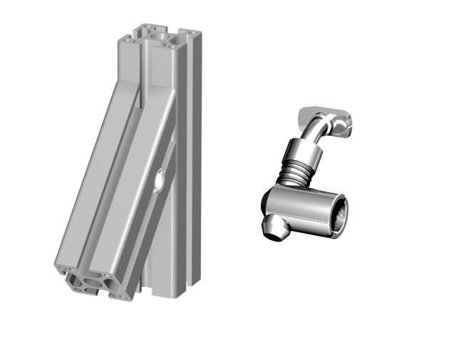 Schuin-gebogen standaard verbinding voor de verbinding tussen een 20 en E profiel.