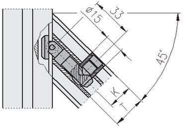 Schuin verbinding voor de verbinding tussen een 20 en E profiel.Voor een hoek tussen de 0º en 45º.