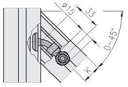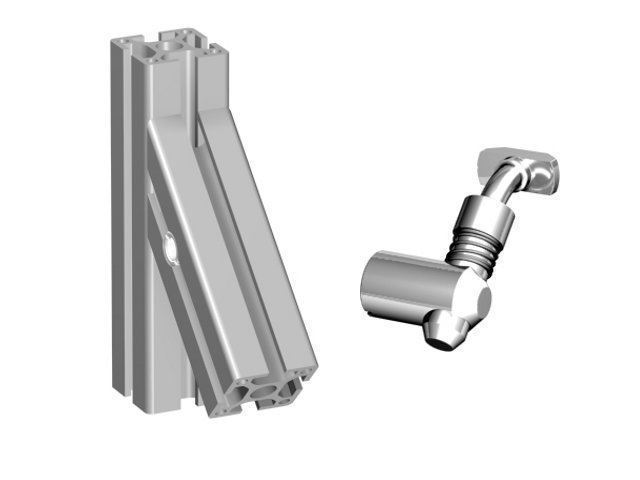 Schuin-gebogen standaard verbinding voor de verbinding tussen een 30 en E profiel.Voor een hoek tussen de 0º en 45º.