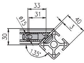 Andreaskruis universele verbinding voor de verbinding tussen een 50 en E profiel.Voor een hoek van 135º.