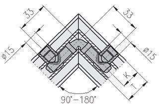 Hoek verbinding voor de verbinding tussen een 60 en 60 profiel.