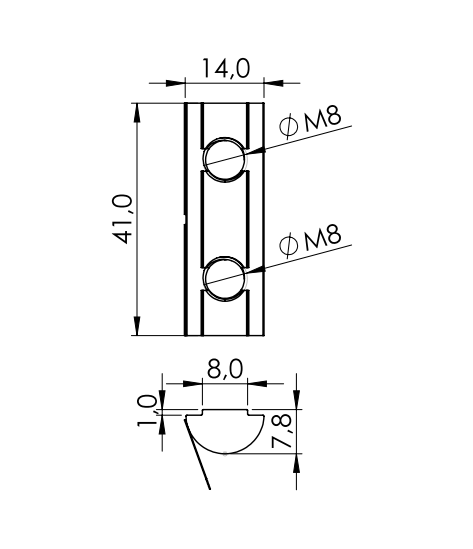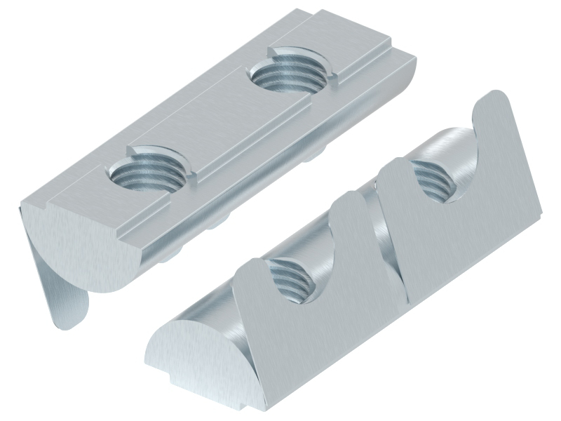 Inkantelbare schuifmoer voor een E groef, voor een moer-type verbinding.
