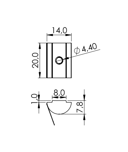 Inkantelbare schuifmoer voor een E groef, voor een moer-type verbinding.