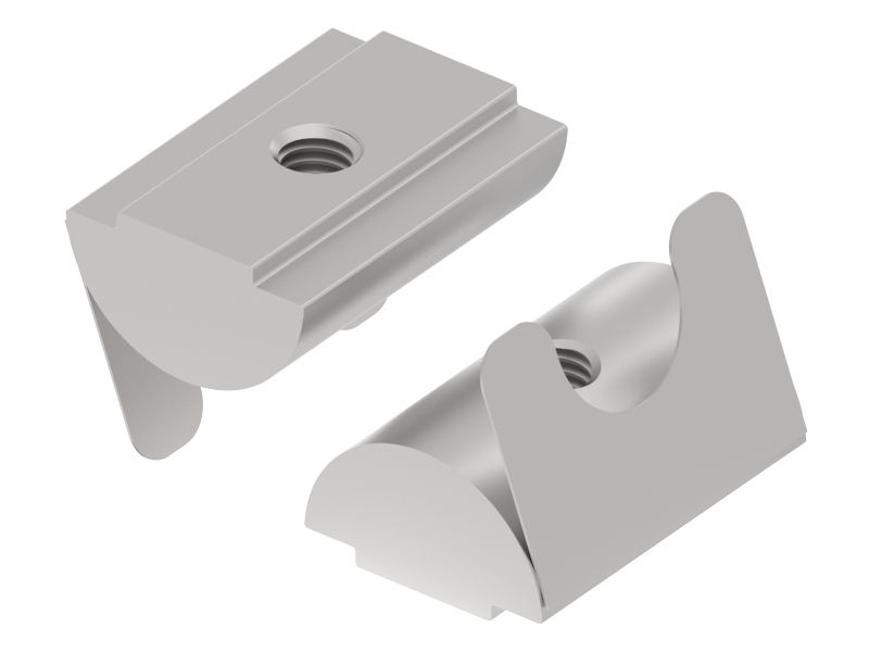 Inkantelbare schuifmoer voor een E groef, voor een moer-type verbinding.