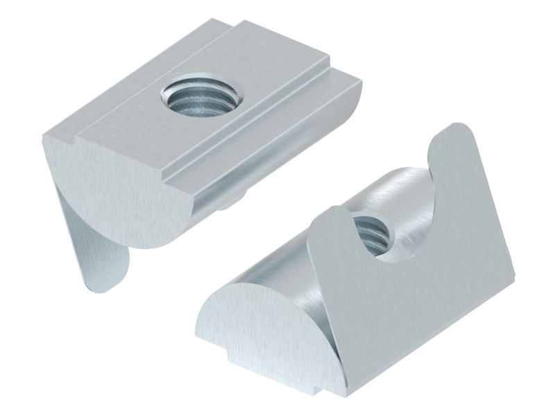 Inkantelbare schuifmoer voor een E groef, voor een moer-type verbinding.