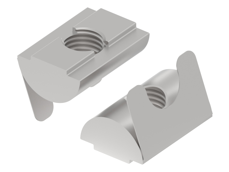 Inkantelbare schuifmoer voor een E groef, voor een moer-type verbinding.