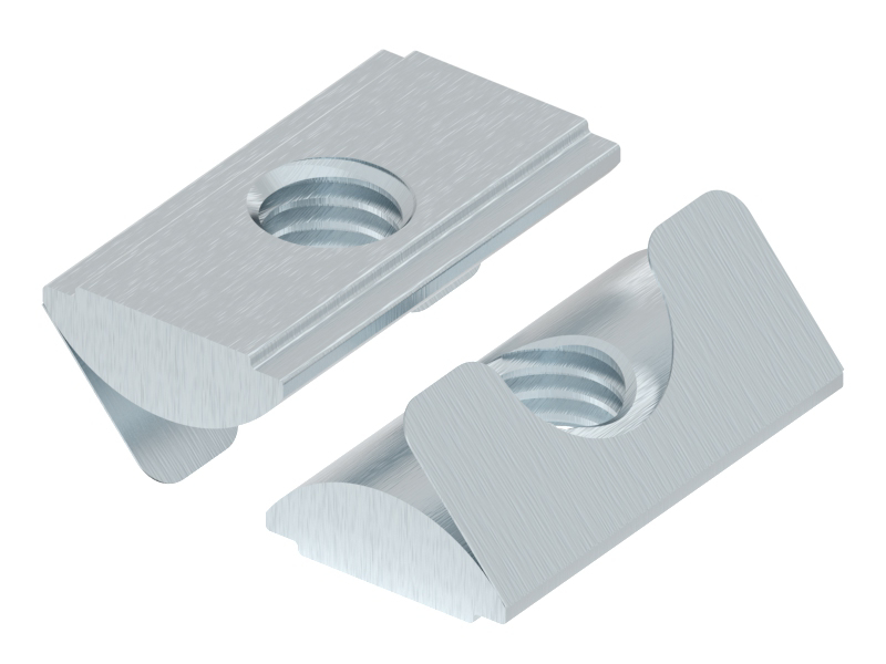 Inkantelbare schuifmoer voor een F groef, voor een moer-type verbinding.