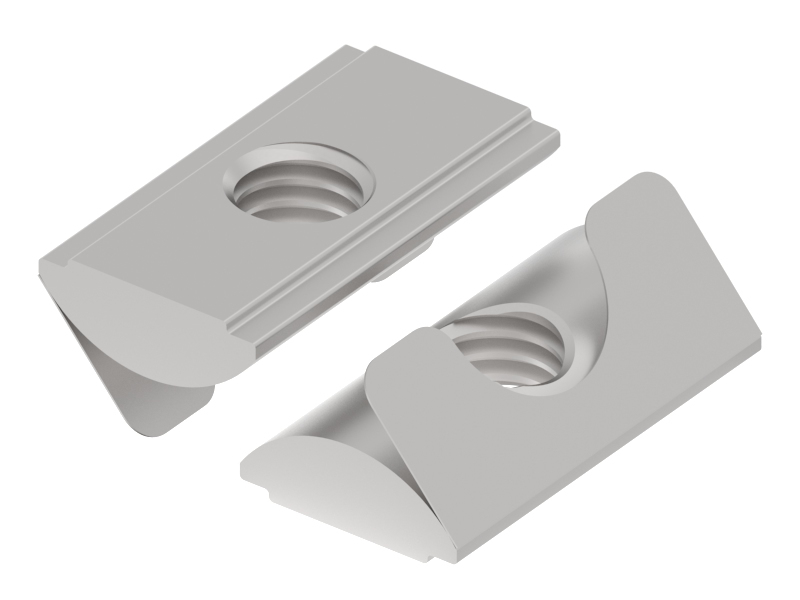 Inkantelbare schuifmoer voor een F groef, voor een moer-type verbinding.