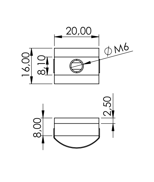Inschruifmoer met veer voor een E groef, voor een moer-type verbinding.