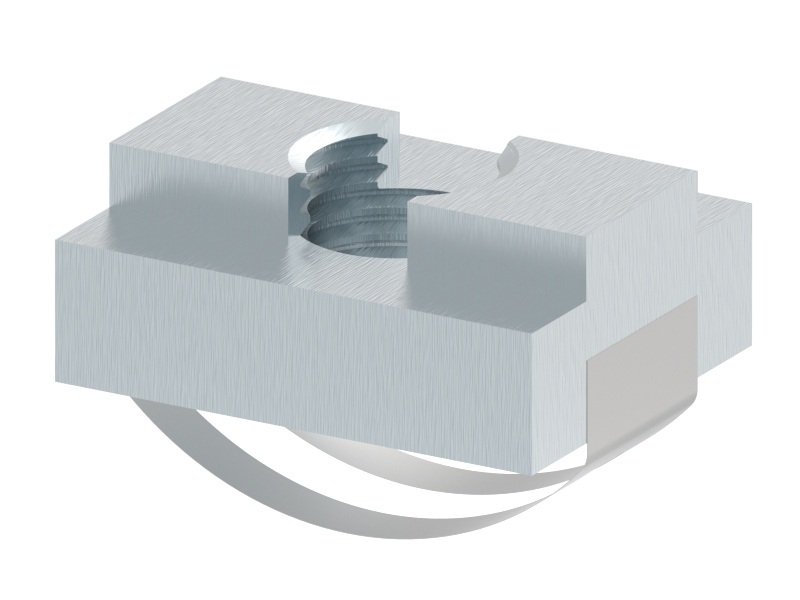 Inschruifmoer met veer voor een E groef, voor een moer-type verbinding.