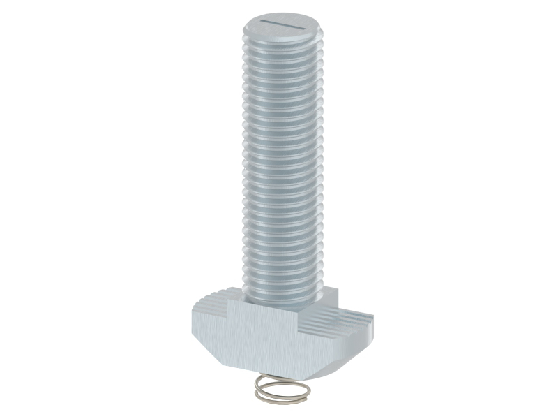 T-bout voor een E groef, voor een moer-type verbinding.