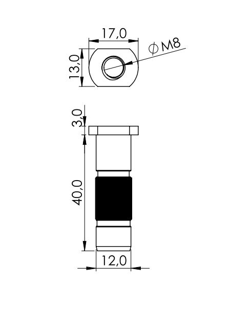 Inslagmoer voor bevestiging aan einde van het profiel, voor een moer-type verbinding.