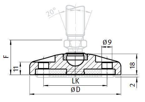 Stelvoet geschikt voor een spindel.Gaten voor de bouten zijn afgedicht, kan open geboord worden.