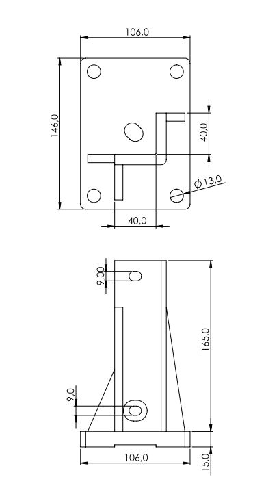 Basis voet voor het vastmaken van 40x40 profielen of frames aan de grond of muur.