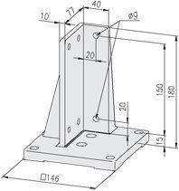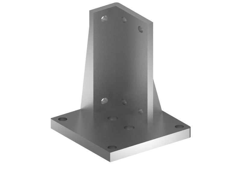 Basis voet voor het vastmaken van 40x80, 60x80 of 45x90 profielen of frames aan de grond of muur.