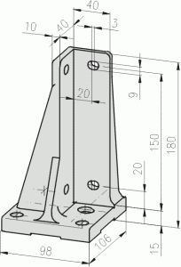 Basis voet voor het vastmaken van 45x45 profielen of frames aan de grond of muur.