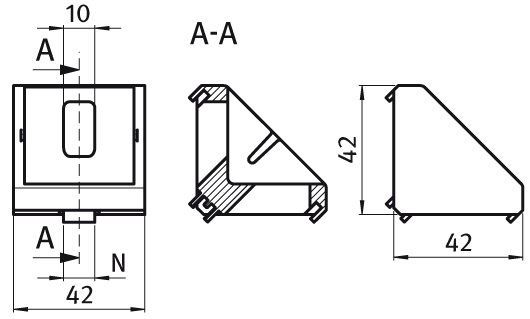 Montagehoek voor het ondersteunen van profielen en de montage van verschillende componenten.