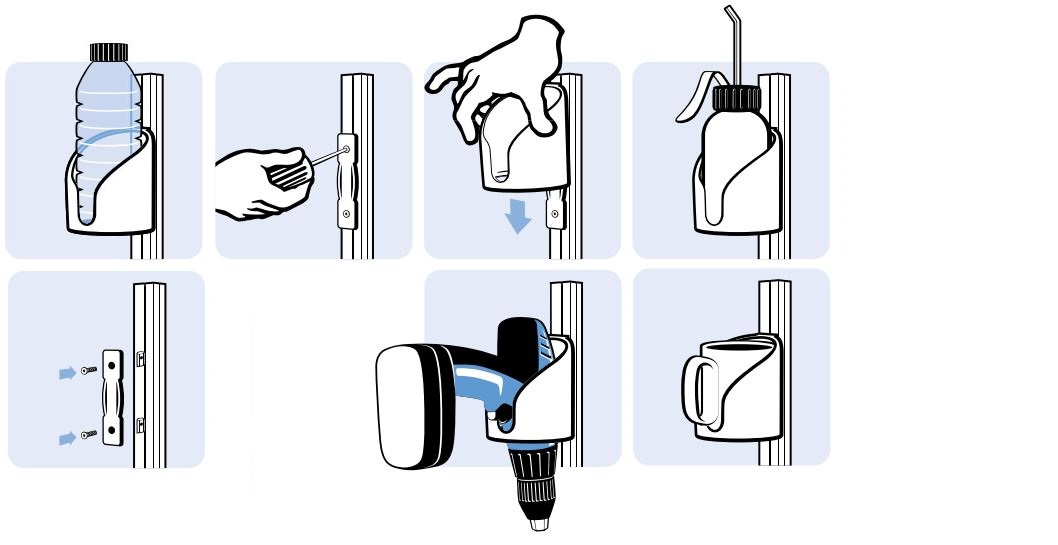 Bekerhouder geschikt om te gebruiken i.c.m. met het aluminium profielsysteem.