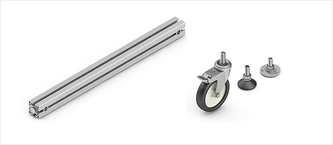 Systeem TQ is bijzonder geschikt voor montagewerkplekken uit aluminium systeemprofielen en als onderbouw voor transportbanden met meerdere poten. De montagesleuven (breedte 8 mm) maken aanbouw van traversen, aflegmogelijkheden en andere aan- en opbouwen over de gehele pootlengte mogelijk.