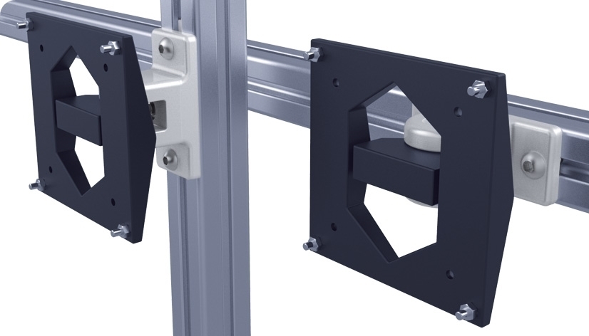 De adapterplaat is om een monitorbeugel of een aluminium profiel haaks te bevestigen, maar ook om 2 profielen als een T-connectie te bevestigen. De montagegaten maken het mogelijk de positie later aan te passen