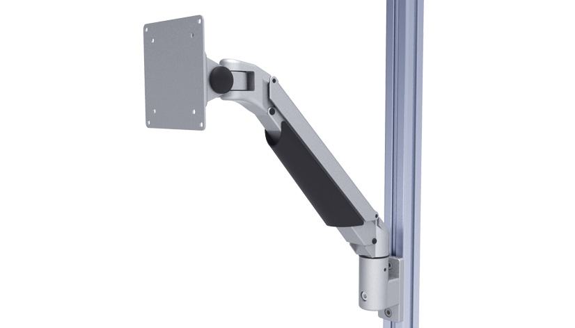 voor montage van verstelbare monitoren van 2 – 10 kg, montageplaat VESA MIS-D 75/100 compatibel; instelbare kijkhoek en hoogte, scherm draaibaar 90°; 360° montageflens voor horizontale en verticale bevestiging met bevestigingsadapter