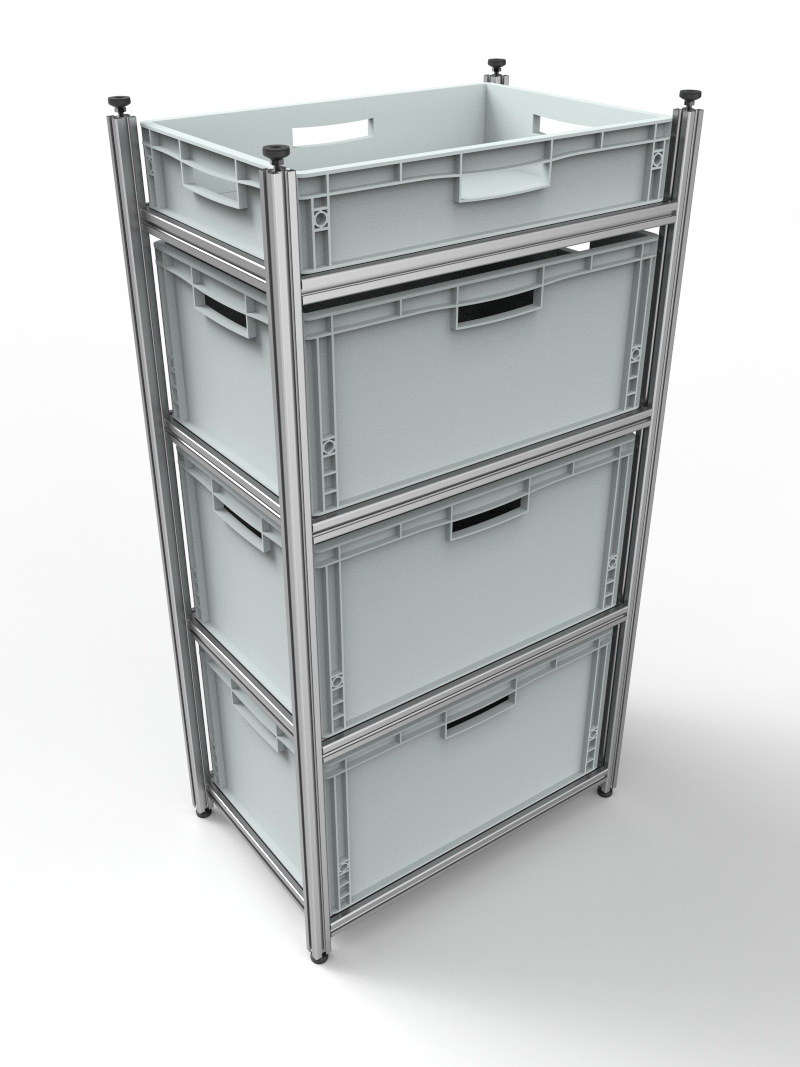 Deze hoogwaardige eurobox stelling is uitgerust met verstelbare stelvoeten en anti-slip platen, en is perfect geschikt voor het plaatsen van één eurobox van 60x40 cm of het combineren van twee euroboxen van 40x30 cm naast elkaar.