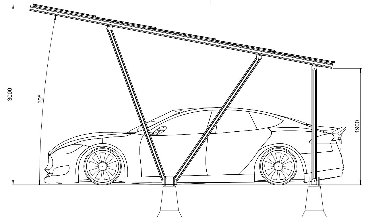 Bij deze carport hebben gekozen voor een frame met 2 verstelbare poten. Hiermee is eenvoudig de hellingshoek in te stellen.
