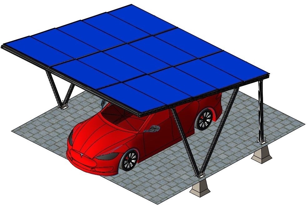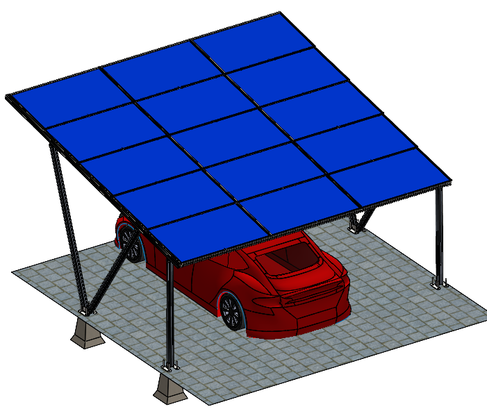 Dit model is uitgevoerd met 15 stuks glas-glas panelen van 320WP. Deze panelen worden speciaal geproduceerd voor onze carports. Dit zodat ze net als dakpannen bevestigd worden boven op het aluminium frame. Het voordeel hiervan is, is dat ze erg makkelijk te monteren zijn.