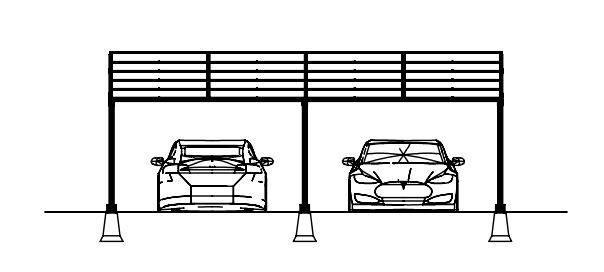 Dit model is uitgevoerd met 20 stuks glas-glas panelen van 325WP. Deze panelen worden speciaal geproduceerd voor onze carports. Dit zodat ze net als dakpannen bevestigd worden boven op het aluminium frame. Het voordeel hiervan is, is dat ze erg makkelijk te monteren zijn.