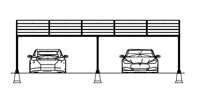 Dit model is uitgevoerd met 25 stuks glas-glas panelen van 320WP. Deze panelen worden speciaal geproduceerd voor onze carports. Dit zodat ze net als dakpannen bevestigd worden boven op het aluminium frame. Het voordeel hiervan is, is dat ze erg makkelijk te monteren zijn.